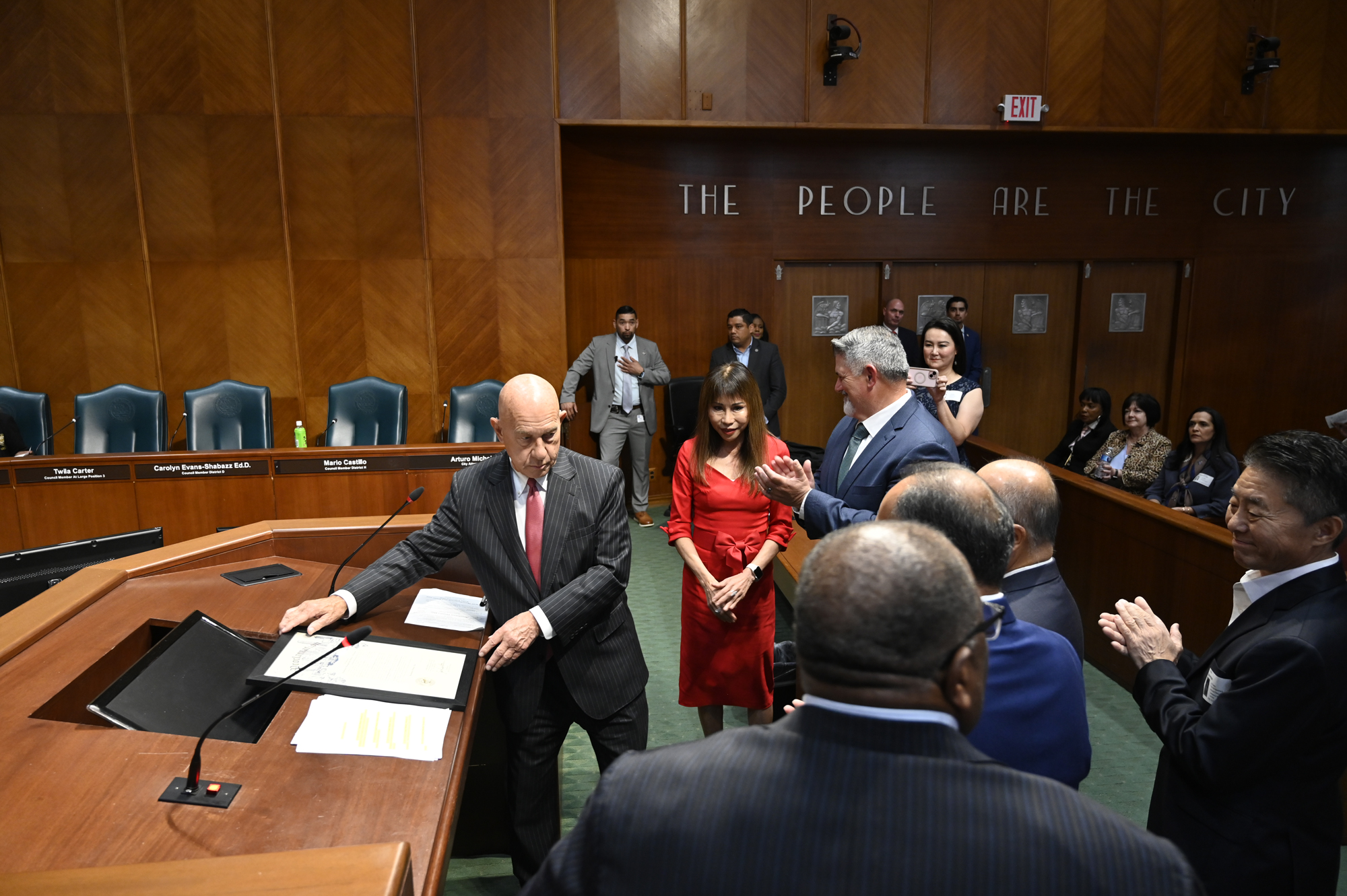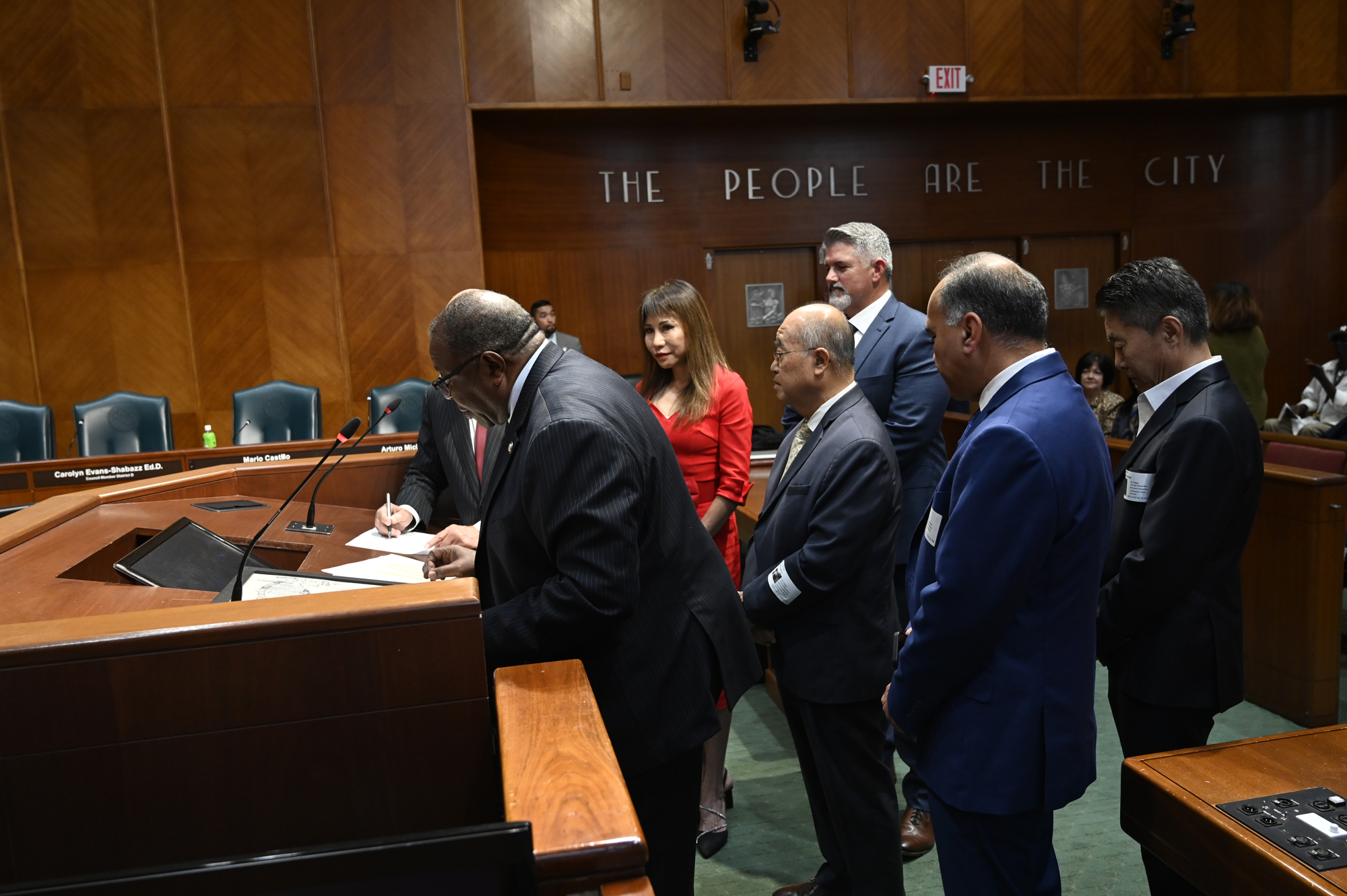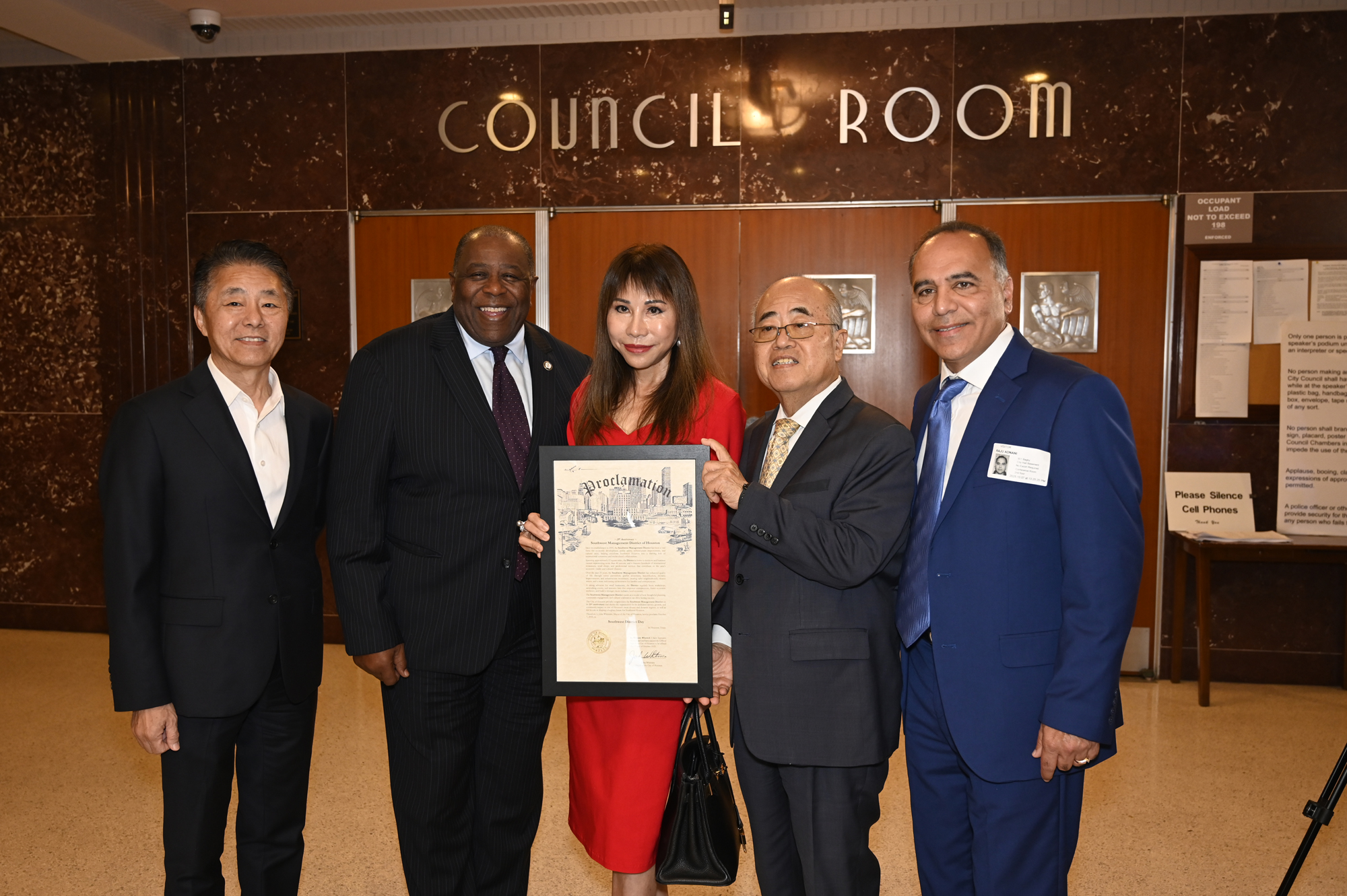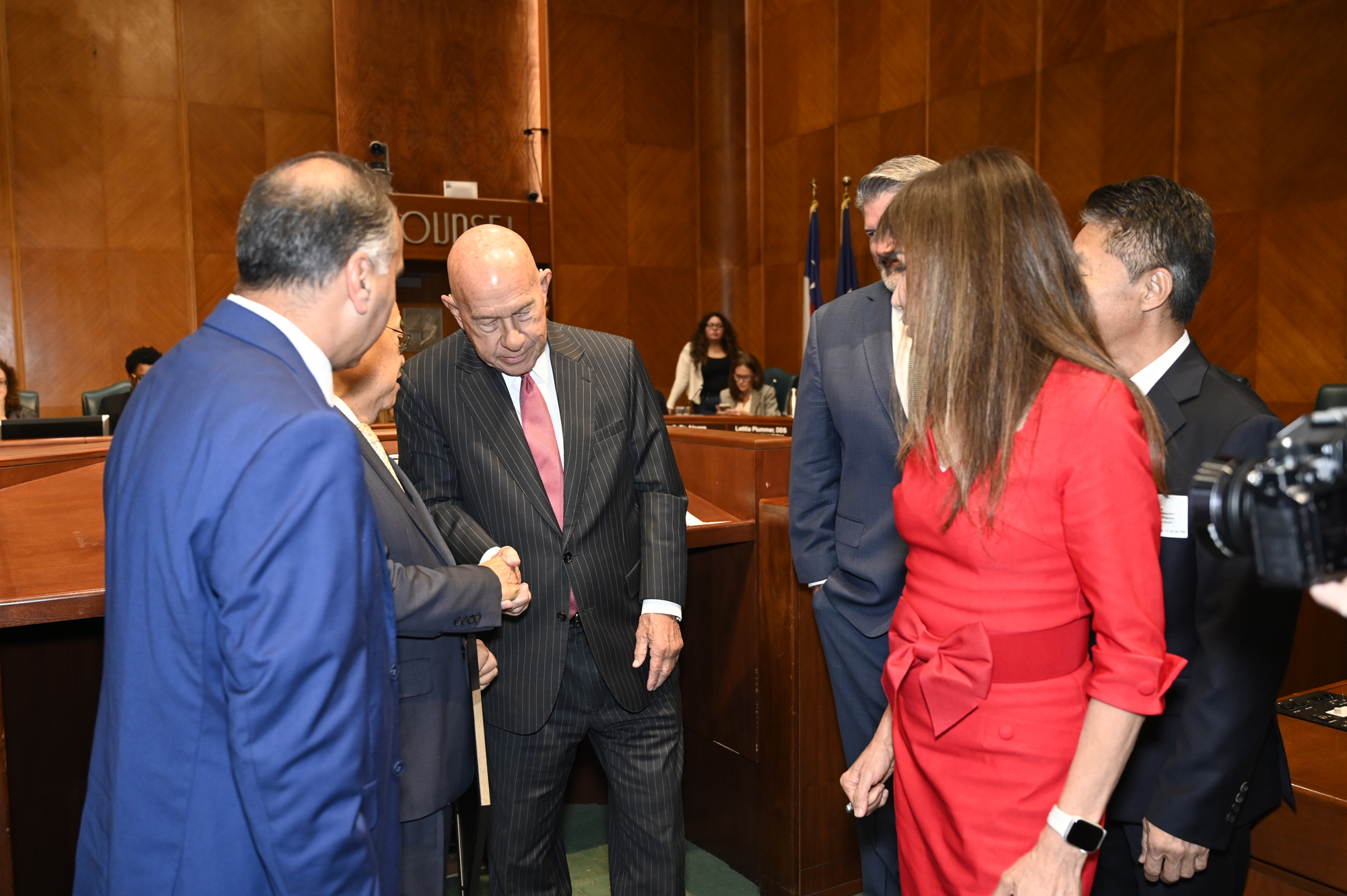 休士頓西南區管理委員會理事團隊,10月7日在休士頓議會聽,接受議會及市長John Whitmire表揚致意,讚揚該會25年長期為社區所做的貢獻。