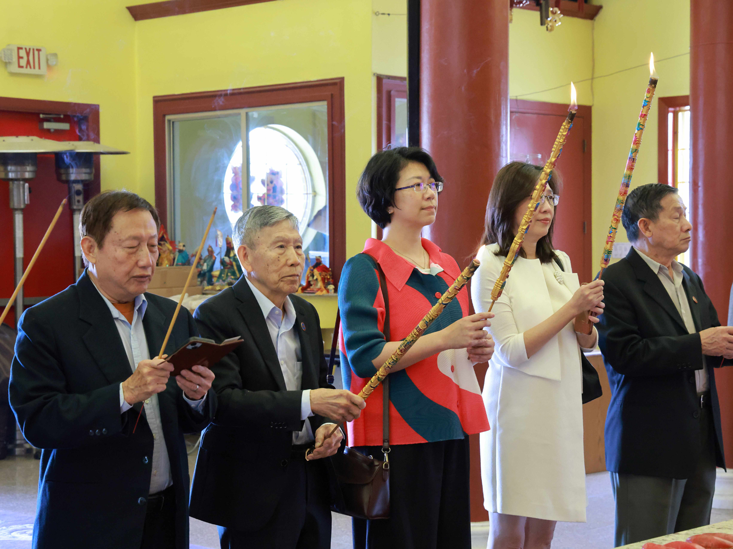 蕭伊芳處長(中)於奧斯汀天后宮上香祈福。