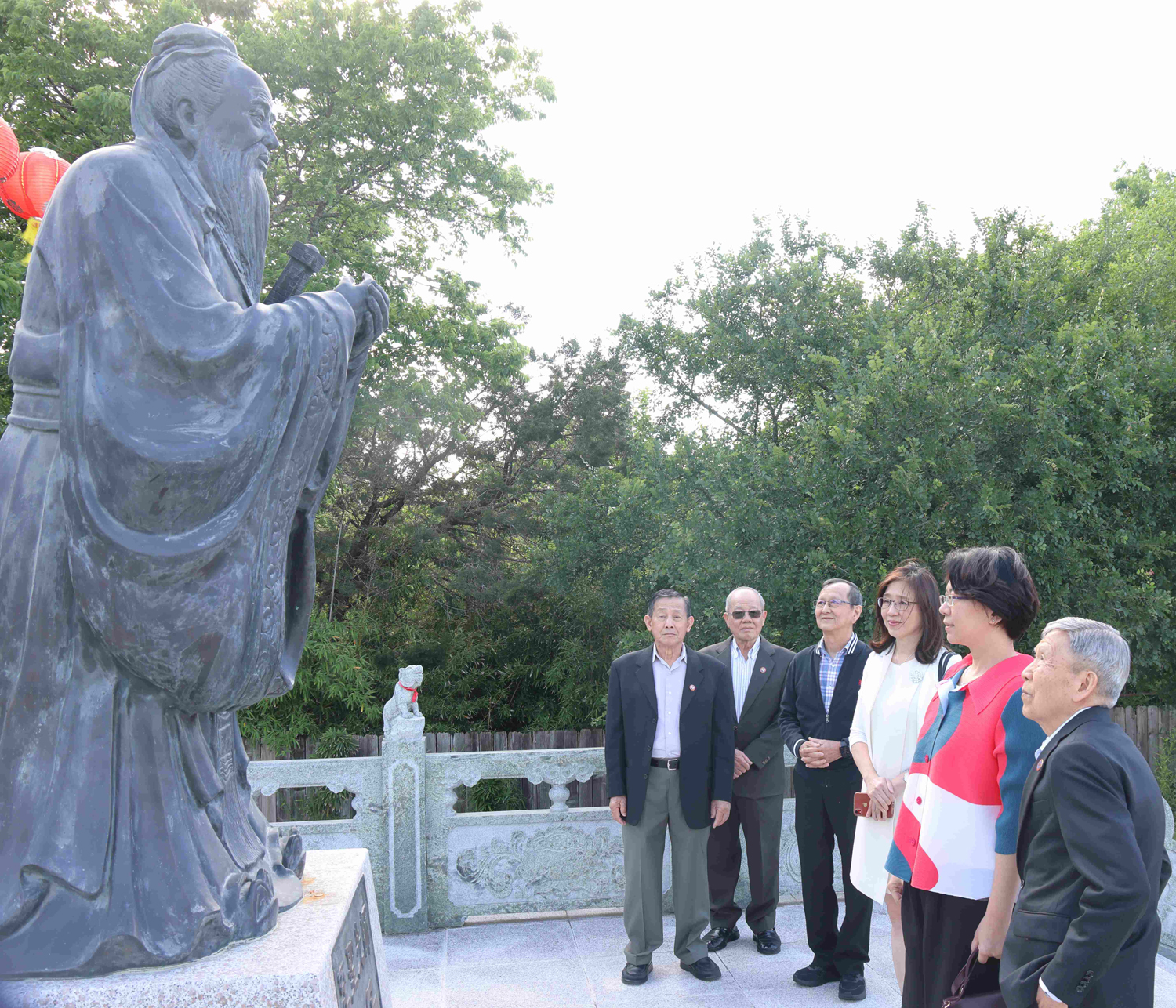 蕭伊芳等人隨即前往天后宮向供奉之媽祖上香,祈求風調雨順國泰民安,接著在陳董事長帶領下參觀該會所、孔子雕像及寺廟建築。考據自臺灣天后廟規制興建的奧斯汀天后宮,處處透出傳統文化氣質,獨具之中式廟宇建築外觀、孔子像及12生肖臺成為當地社區之特色,美國主流學校學生經常到此參訪導覽,宮廟前庭建立「禮義廉恥」之牌坊,更吸引來自台灣潮州鄉親的注意,未來亦將規劃成立中文學校及興建老人公寓。
