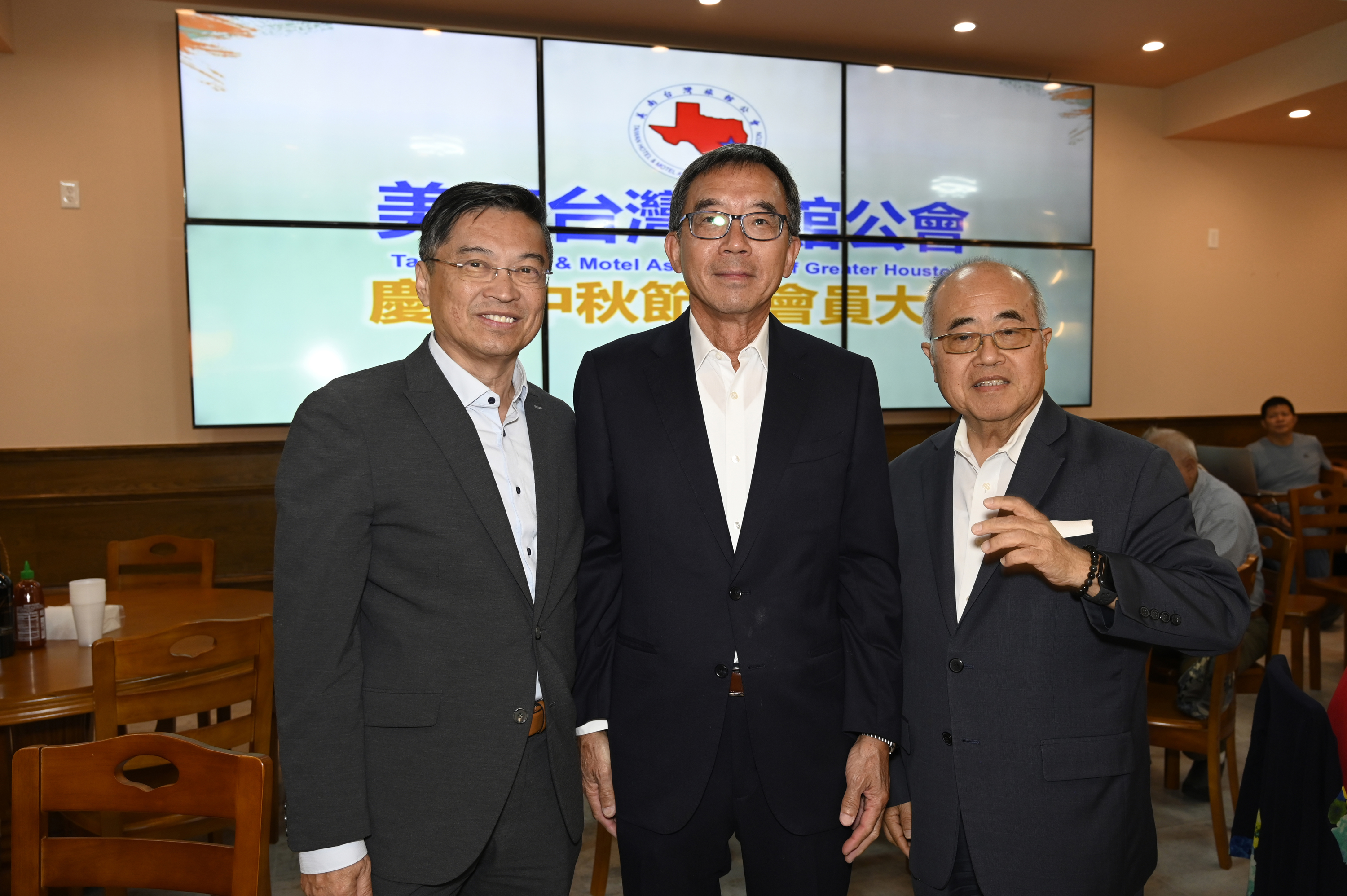 美南旅館公會10月份上左起黃安詳、嚴杰、李雄留影。