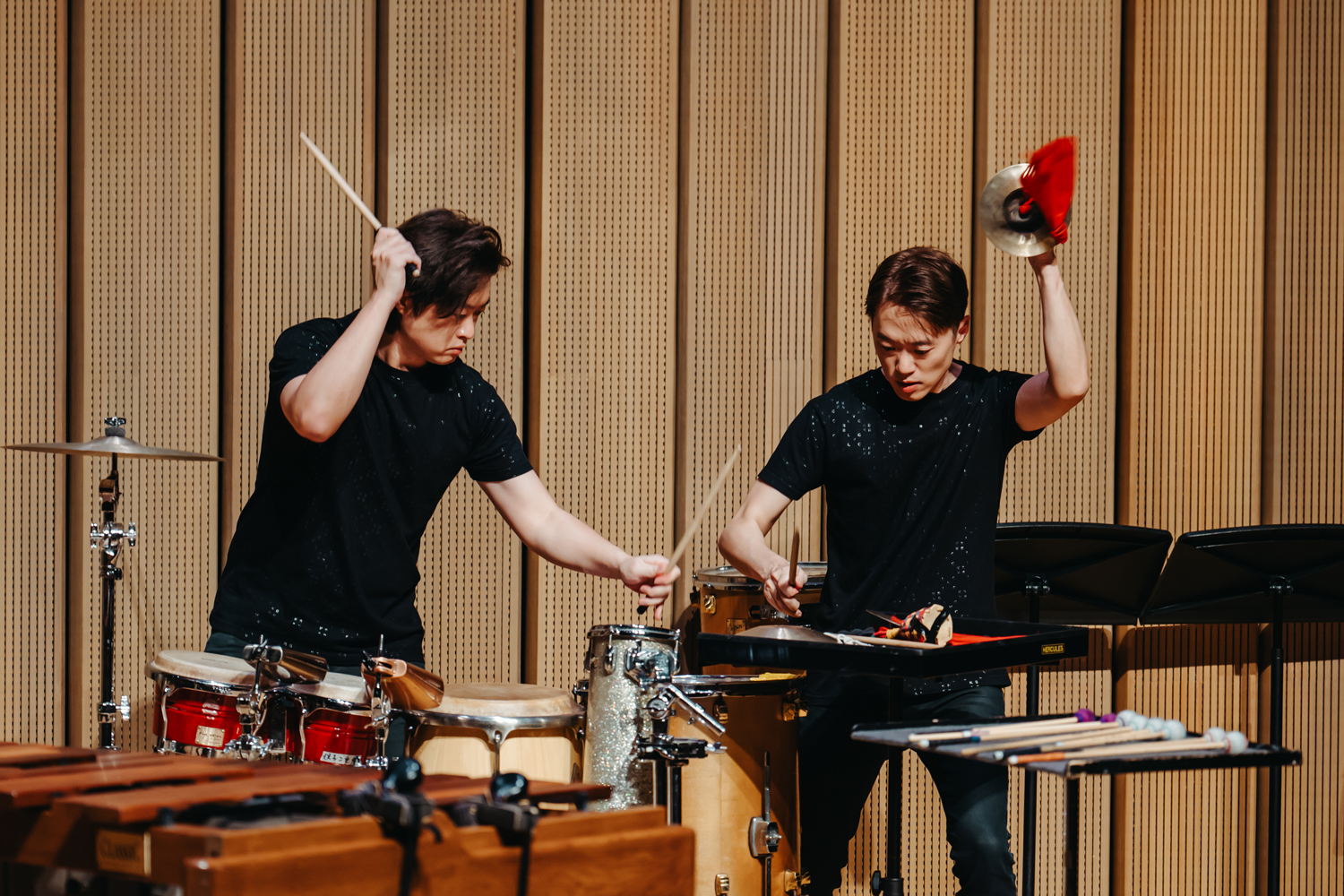 雙子打擊樂團的音樂家簡任廷、簡任佑,從小顯露出打擊的特殊音樂天分,取得丹麥皇家音樂學院打擊樂最高文憑 (演奏博士)。2023 年雙子打擊樂團獲美國國務院遴選為「Center Stage 第六季駐團藝術家」,於甘迺迪中心演出,並與丹麥國家交響樂團及墨西哥名指揮Alondra de la Parra合作,獲全場近1800名觀眾起立鼓掌殊榮,丹麥Klassisk 樂評高度評價:"優雅的演奏動作及細膩的觸鍵”。同年,他們以精湛編曲榮獲臺灣傳藝金曲獎「最佳編曲獎」殊榮。