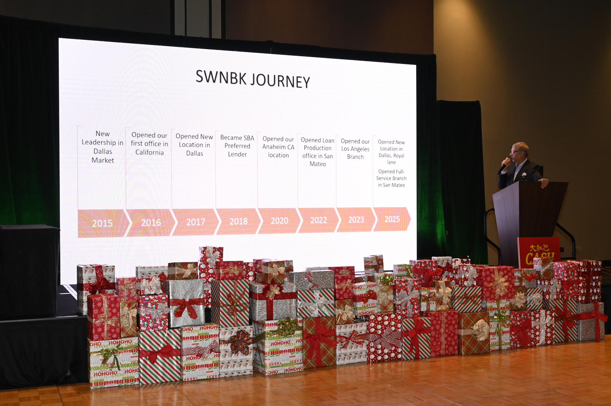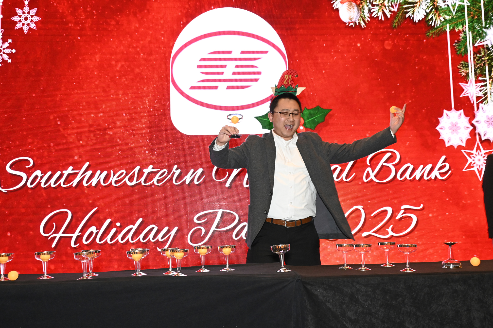美南銀行2025年的Holiday Party,董事長李承穗開場講話時,對全體同仁過去的努力付出,做出了鼓舞人心的致意,凝聚全美同仁向心力,準備好在新的一年裡,繼續開出亮麗成績。